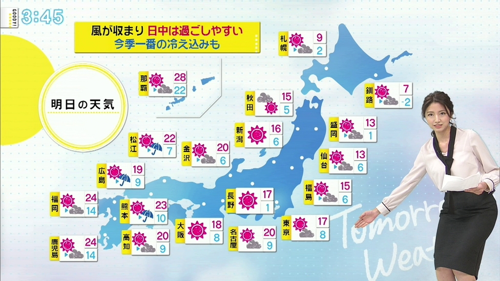 なっちゃんの代打のお天気コーナー、毎日余裕のある進行だったね。
