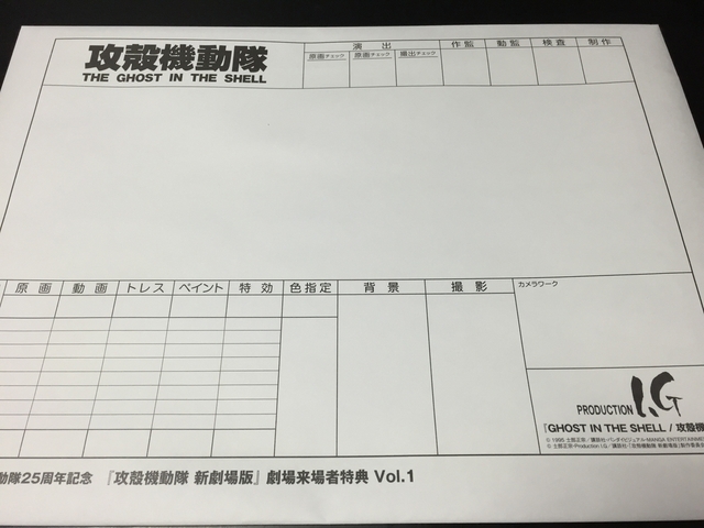 原画展の内部は撮影不可なので先日の「攻殻機動隊 GHOST IN THE SHELL 新劇場版」の来場者特典でもらったのをチラリとお目にかけましょうか・・・