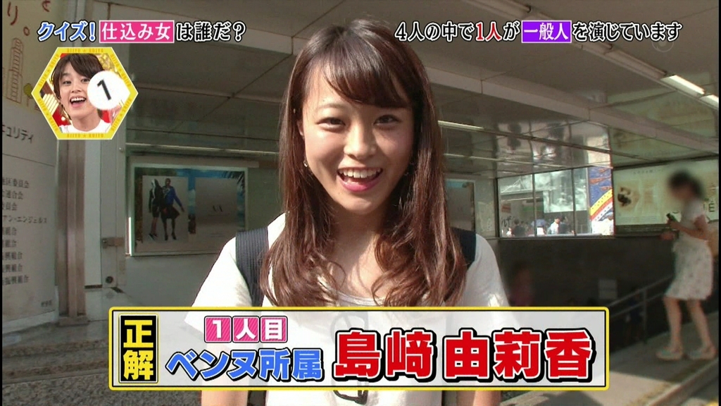 街頭インタビュー風に声をかける川辺優紀子ちゃんと、一般人を装ってそれに応じる島﨑由莉香ちゃん。